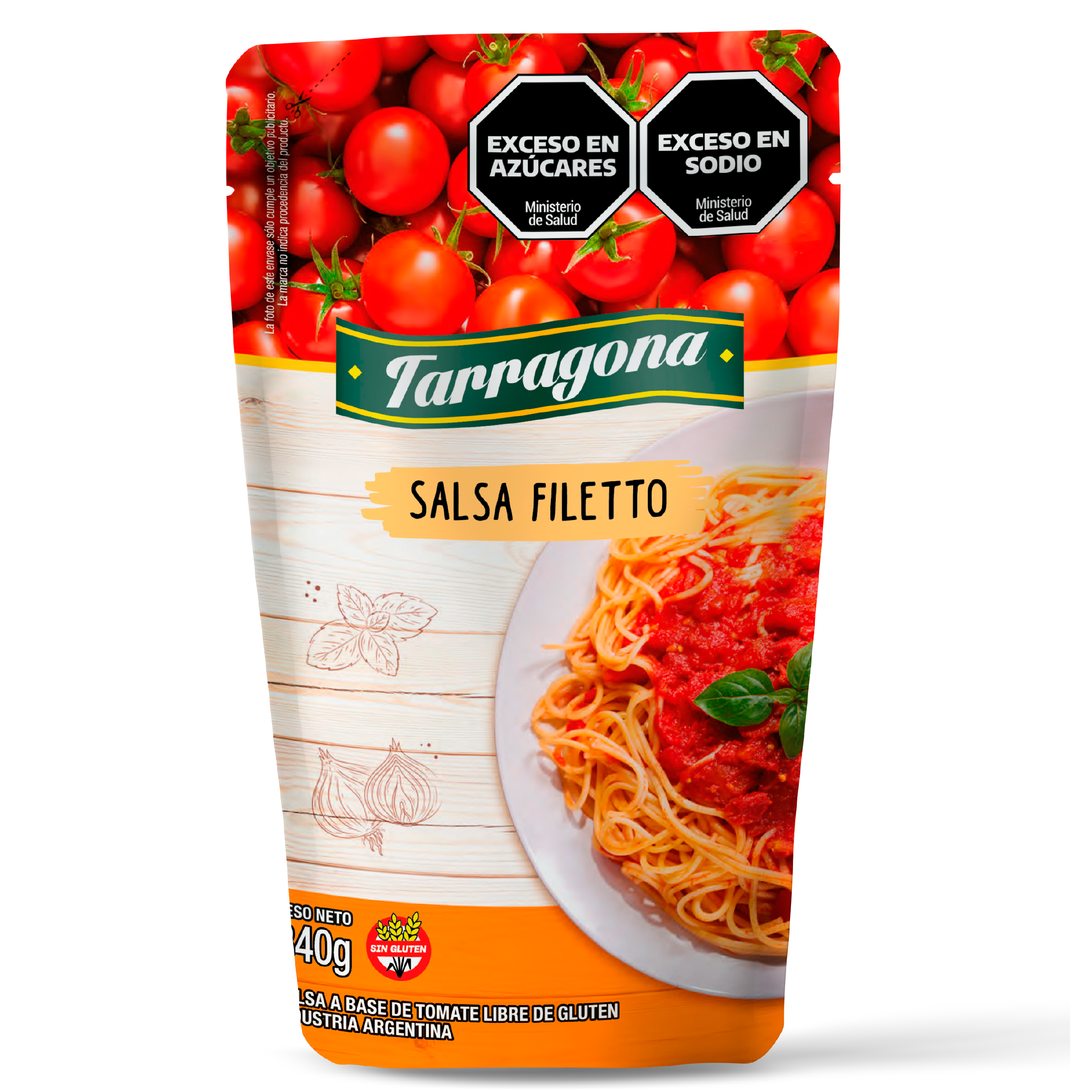 • La salsa fileto es una deliciosa preparación a base de tomates. Su textura suave y su sabor robusto la convierten en una opción versátil para acompañar pastas, pizzas y una variedad de platos italianos. Con su combinación de ingredientes frescos y un toque de especias, la salsa fileto ofrece un gusto auténtico y casero que realza cualquier comida. Ideal para quienes buscan una salsa rica y fácil de preparar, es un clásico en la cocina mediterránea.